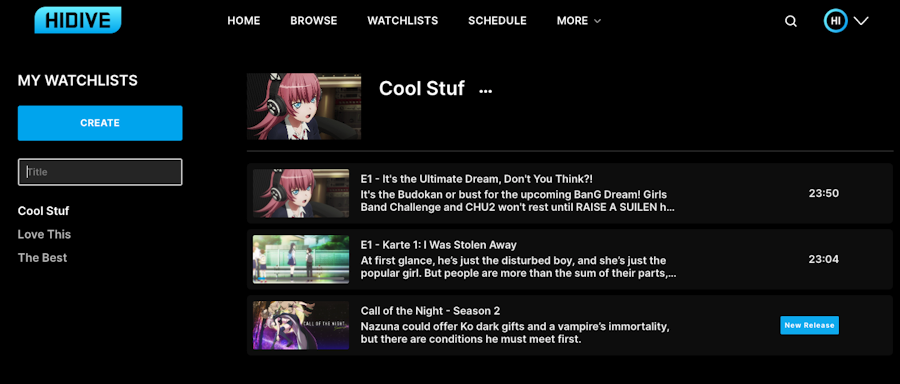 "Watchlist". Once on this page, you will see create and then you can type in your title. To add a title to your watchlist, click on a title and then click the icon on the bottom left of the title, and then add to an existing watchlist or create a new one. You can create a maximum of 500 customized watchlists.